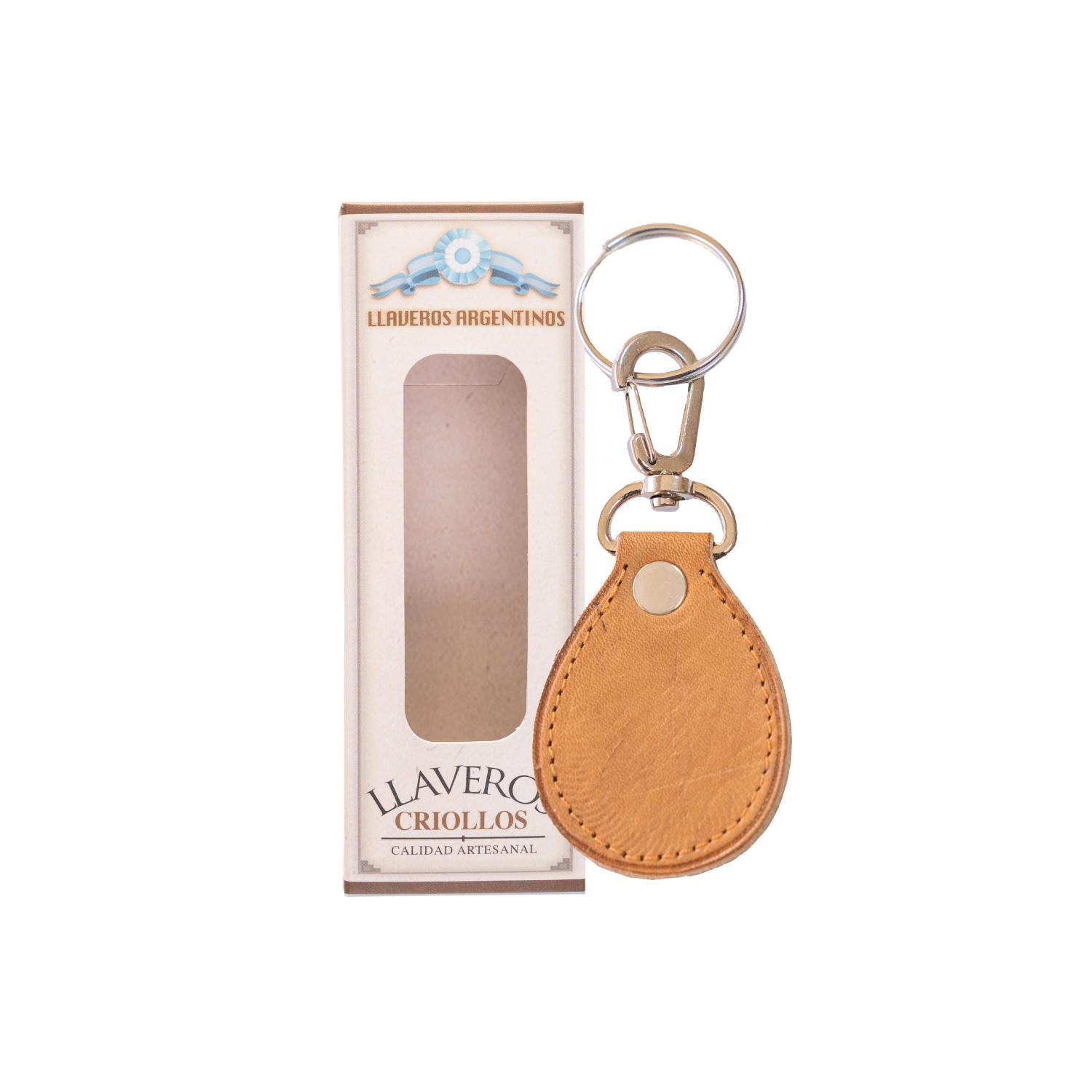 Llavero De Cuero Tipo Gota Con Mosqueton, Grabado C/Caja